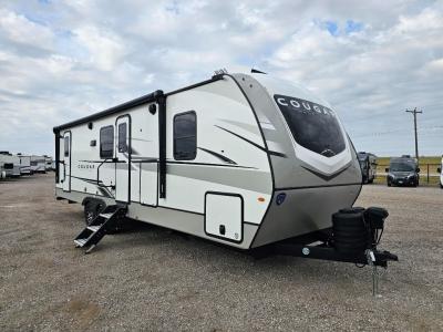 The Keystone Cougar Half-Ton fifth wheel and travel trailers are known as one of America's favorites for a reason! Some of those reasons are the exclusive features that come from Keystone, like the Winegard Air 360+ omni-directional rooftop antenna, the in-floor heating ducts, and the HyperCore composite wall construction with Vixen Fibrogloss high-gloss finish. The Cougar Half-Ton has a Climate Guard protection package with heat-deflecting white sidewalls, two roof attic vents, PEX plumbing and more to enjoy four season camping. Inside, you'll love the dimmable lighting, night roller shades throughout, shower skylight, and bedside USB outlets to keep your electronics charged.